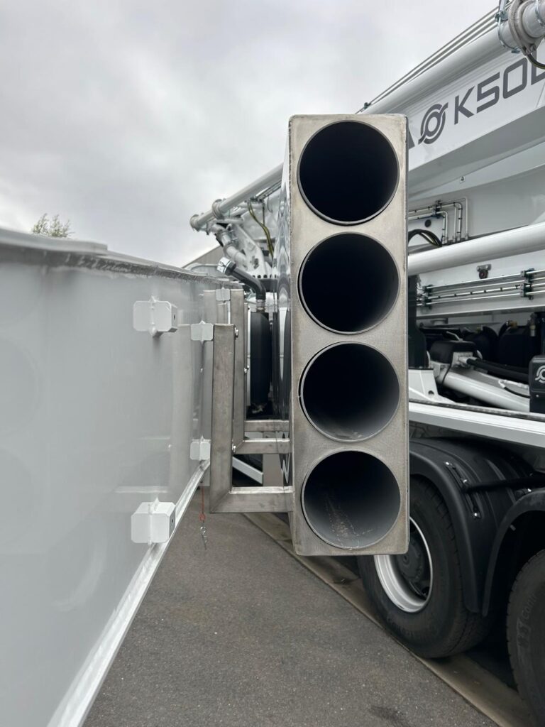 Dankzij de B5RZ 50/44 mastconfiguratie is de machine zeer breed inzetbaar en kan in de krapste ruimtes worden opgesteld en uitgeklapt. De 5-delige mast is een rol-Z uitvoering welke is voorzien van 125mm betonleiding waarmee met grote capaciteiten zonder problemen kan worden verpompt.