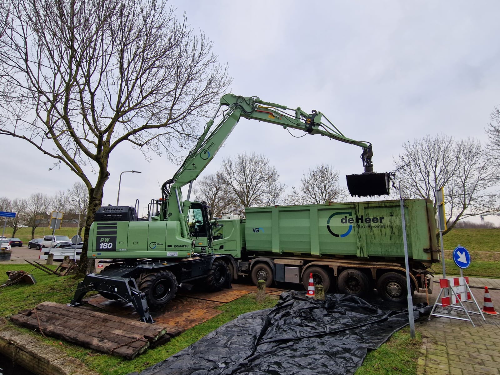 De nieuwe zeer complete Komatsu PW180-11 is natuurlijk direct herkenbaar aan de bekende bedrijfskleuren van De Heer land en water. Onze spuiterij in Hardenberg heeft dit uitgevoerd.