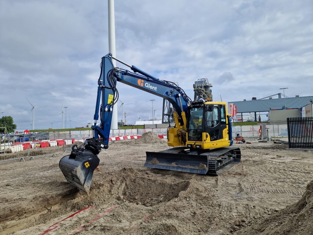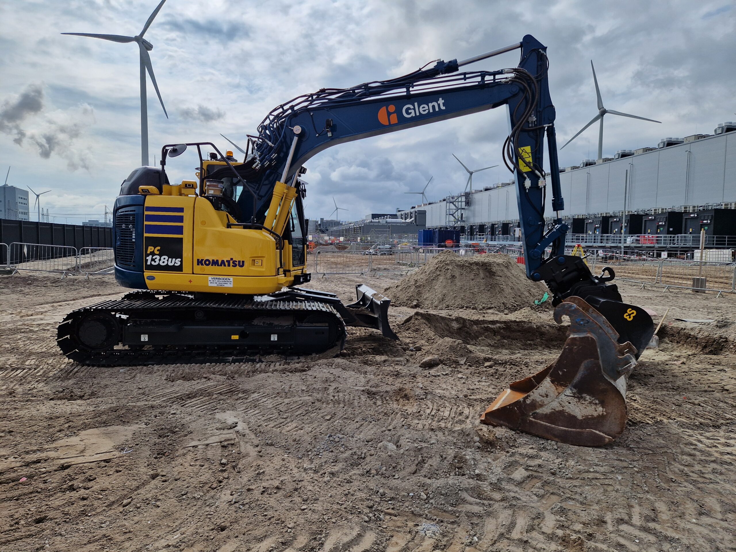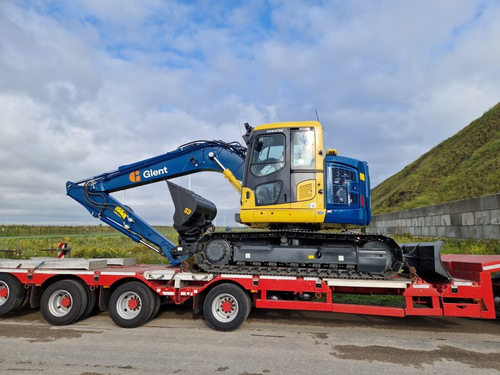 Onlangs heeft Glent een nieuwe Komatsu PC138US-11 rupsmobiele graafmachine in gebruik genomen. De ruim 15 ton wegende PC138U-11 is een graafmachine met een korte opbouw aan de achterzijde waarmee de machine zonder problemen in krappe ruimtes kan werken.
