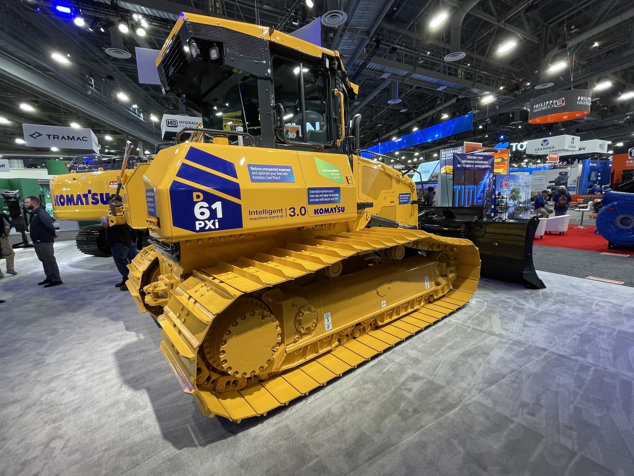 De machine is voorzien van een dozerblad en kantelbare snelwissel.