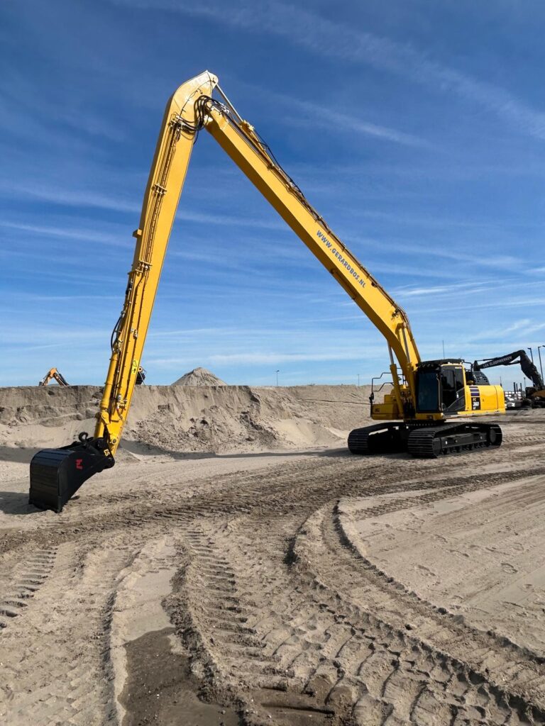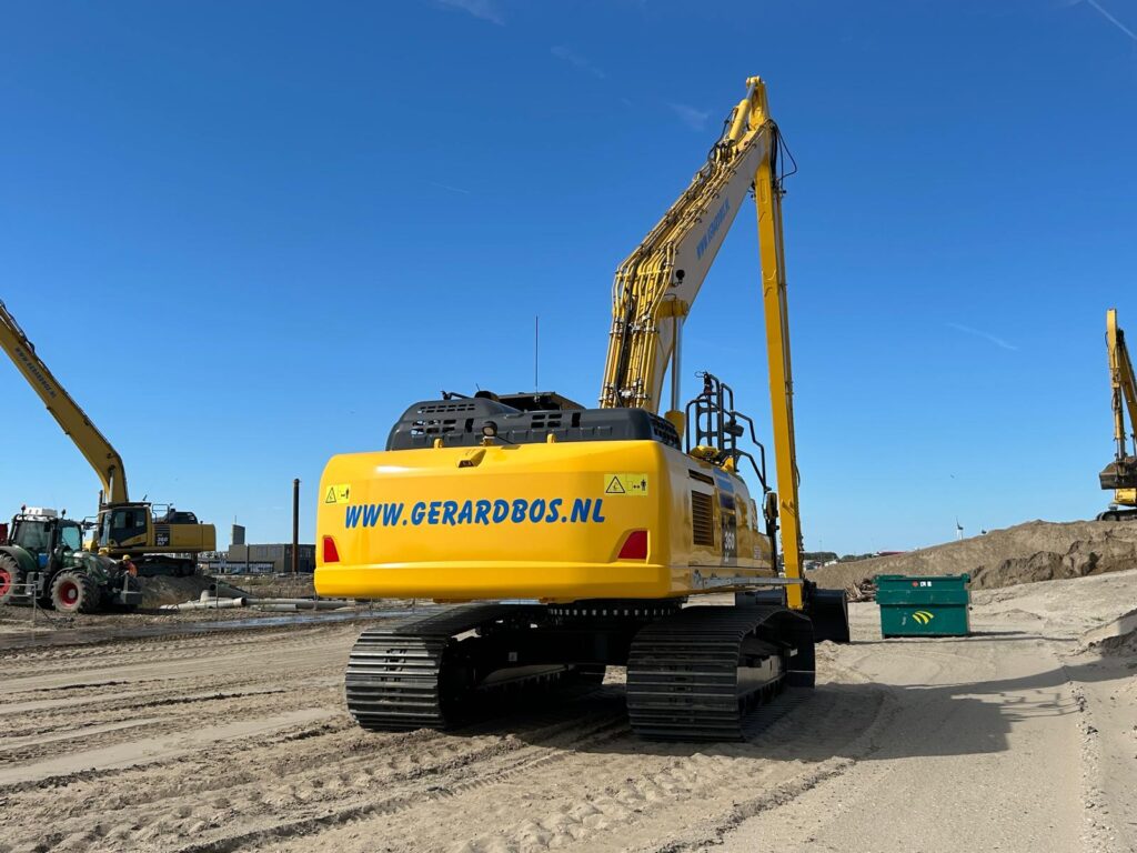 Van der Spek Vianen heeft een nieuwe Komatsu PC360SLF-11 geleverd bij Gerard Bos Machineverhuur in Ammerstol. Deze 43 ton Komatsu is een SLF uitvoering waarbij SLF staat voor Super Long Front en dat is deze PC360 zeker met een bereik van 22 meter op het bakmes.