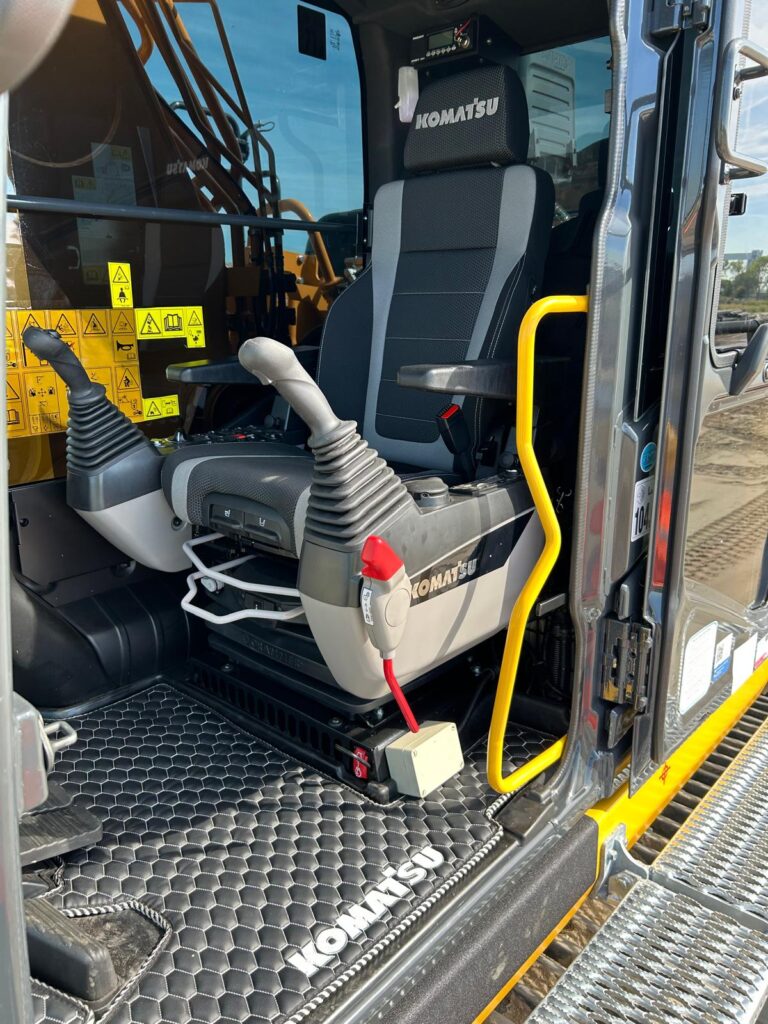 Dankzij de Leica iCON iXE 3D voorbereidingen is het werken met GPS ook geen probleem. In de cabine is een luxe premium stoel gemonteerd waarop de machinist alle functie goed kan bedienden. Door de gemonteerde overdruk zit de machinist altijd veilig voor eventuele invloeden van buitenaf.