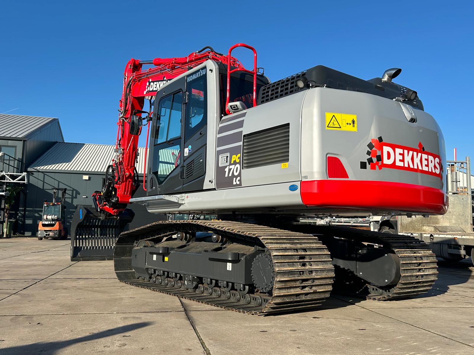 De machine is o.a. voorzien van een verstelgiek en zeer uitgebreid Engcon draaikantelstuk inclusief snelwissel zodat het complete draaikantelstuk kan worden afgezet als dit niet benodigd is. Hiervoor is een Engon QS60 snelwissel gemonteerd zodat naast het draaikantelstuk ook bakken, palletvork en andere uitrustingstukken kunnen worden gemonteerd met een druk op de knop.